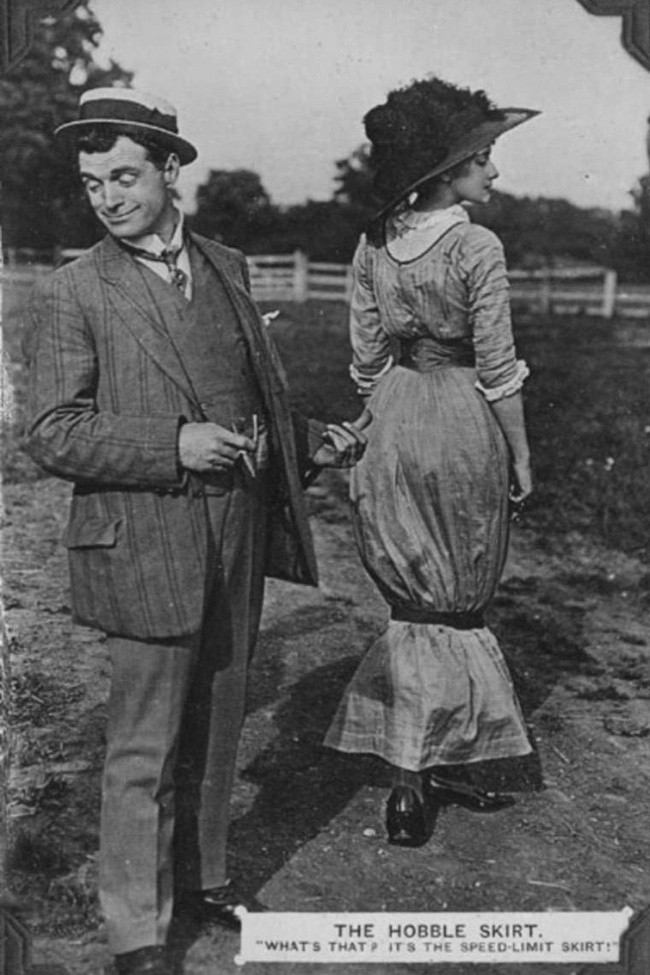 Смешное название этот предмет дамского гардероба получил из-за эффекта, который он оказывал на походку. Длинная, сильно зауженная в районе щиколоток юбка заставляла женщин словно прихрамывать во время ходьбы. Изобретение модного дома Пакен (Paquin) вошло в обиход в 1910–1914 годы. К счастью, нелепая одежда, сильно сковывавшая движения, довольно быстро ушла в небытие.