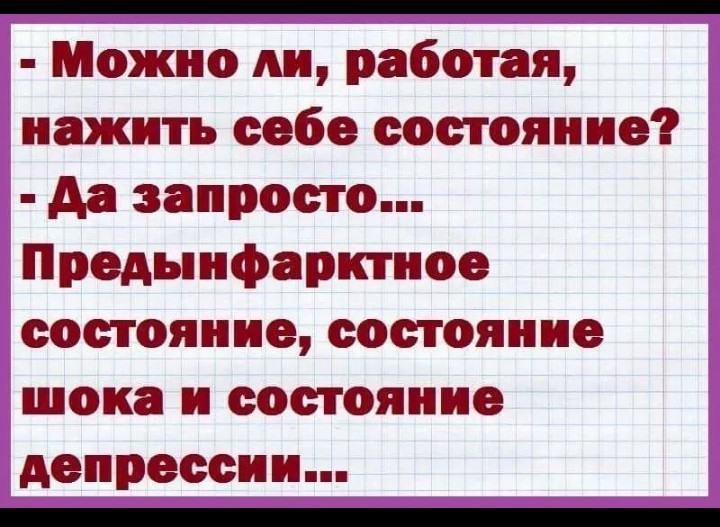 И разные другие состояния - скуки, отчаяния, безумия, эйфории и радости в конце концов, в зависимости от того , кем работаешь..