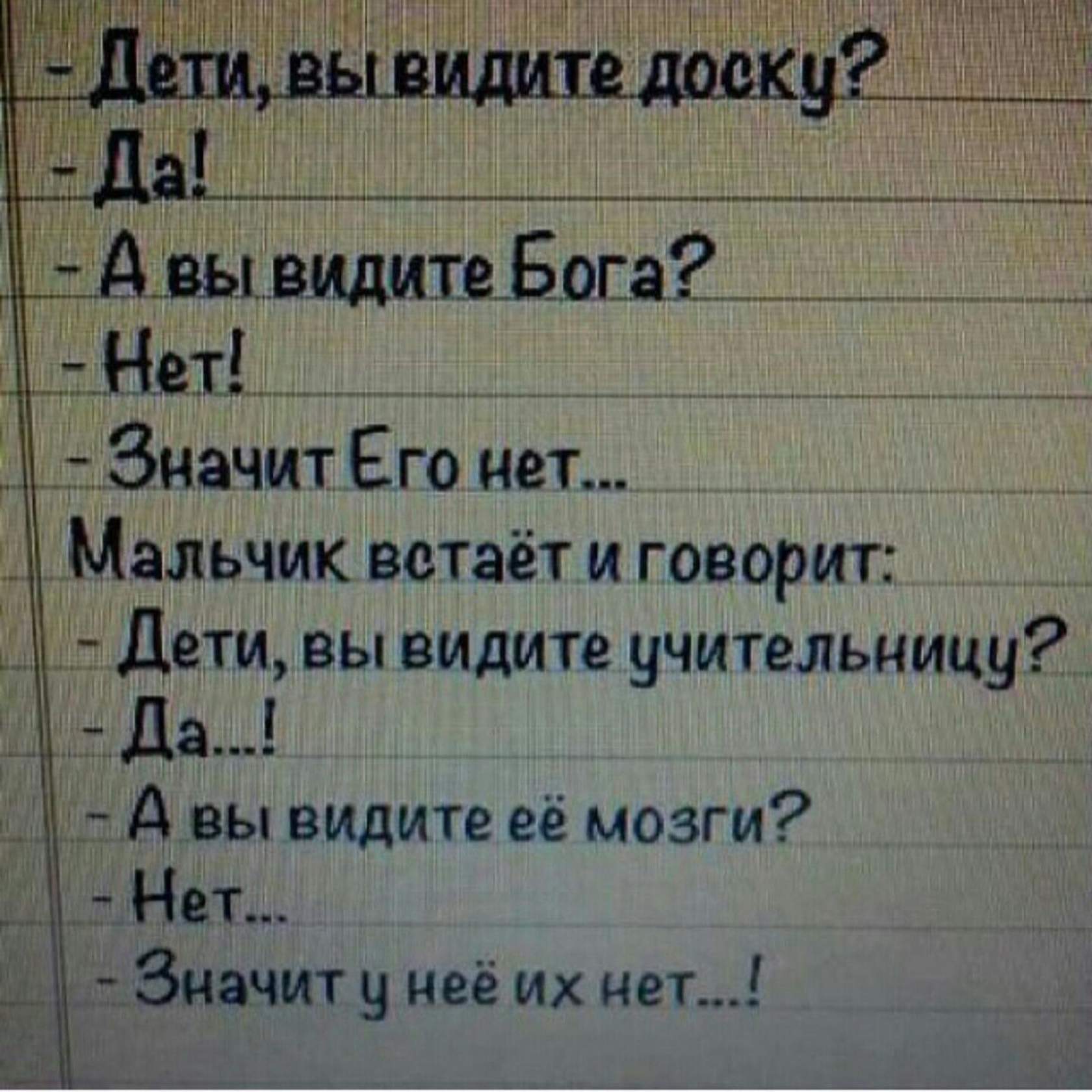 Мальчик даже и не подумал, что то же самое можно сказать как про него самого, так и про всех остальных в классе)) Он - есть, а его мозгов-то тоже никто не видит. Ох и огребёт этот самый мальчик, если в классе у кого-нибудь мозг сработает на осмысление логики, заложенной в его словах))