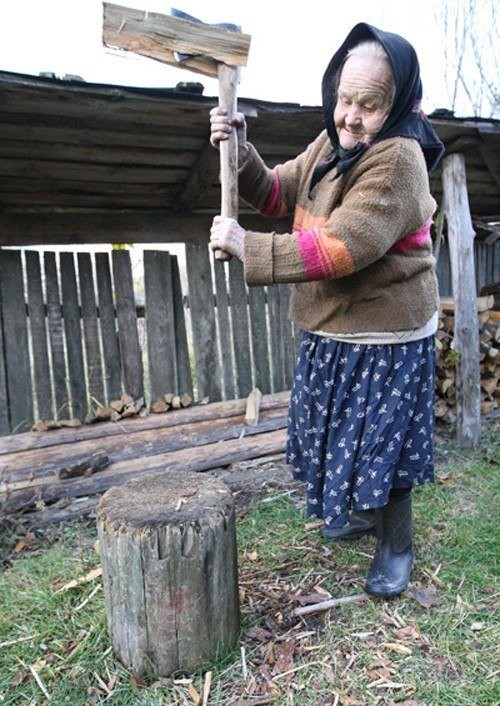 Дрова колоть это очень трудно для женщины, тем более для старой.