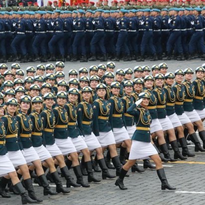 Девчонки в белых юбчонках шагают дружно по Москве.