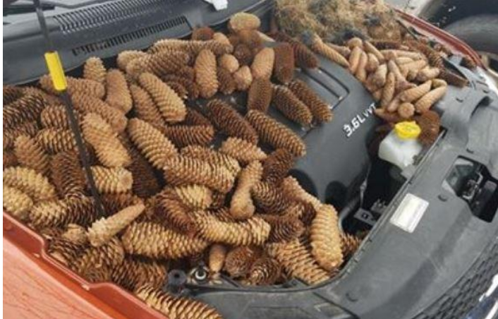 В Америке белки спрятали под капотом машины свыше 20 килограммов шишек Источник: https://zelv.ru/obshchestvo/77573-v-amerike-belki-spryatali-pod-kapotom-mashiny-svyshe-20-kilogrammov-shishek.html