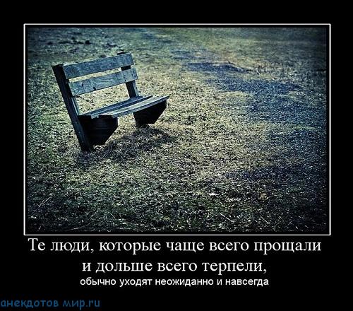 Люди которые прощают и долго терпят, обычно уходят неожиданно и навсегда, так мы устроены!!