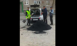 По словам женщины, кража произошла около часа дня во дворе ее дома. Дорога во дворе разбита, и сюда привезли асфальт для латания дыр. Женщина заметила, что к куче асфальта подъехала белая «КИА», и рабочие начали засыпать асфальт в багажник машины.