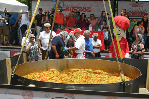 Шеф-повар Энрике Пиньейру вместе со своими помощниками в течение 6 часов колдовал над рисом, добавляя в него голубиный горох, свинину и соус софрито, так что блюдо получилось вполне классическим, если только не считать его огромное количество.
