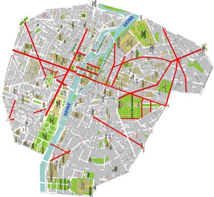 Прямые и широкие бульвары Парижа проектировались таким образом, чтобы артиллерии, при необходимости, было легче расстреливать бунтующую толпу.