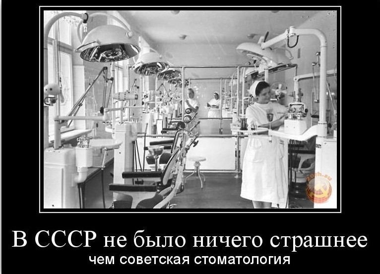 Стоматология была в СССР бесплатной и это был огромный плюс. Но в тоже время зубной кабинет был сродни камере пыток, анестезия никакая, а лечение просто пытка. Фраза "А ТЕПЕРЬ НАДО ХОРОШО ПОСИДЕТЬ" до сих пор вызывает чувство страха.