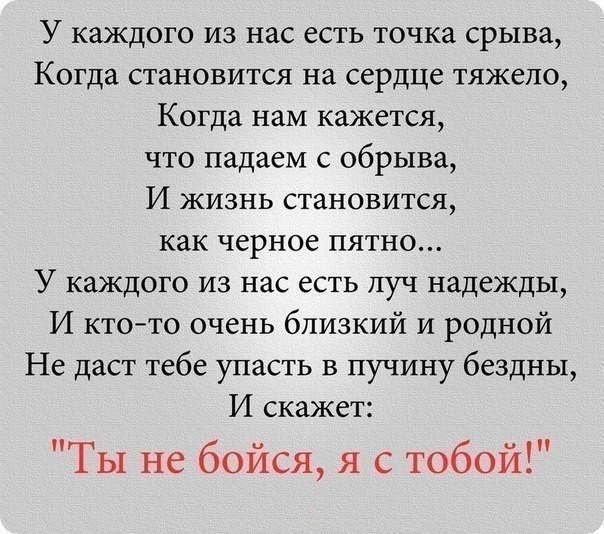 Да, мы все разные. И точка у каждого своя. Прекрасно, что если есть кому поддержать человека в трудные моменты жизни.