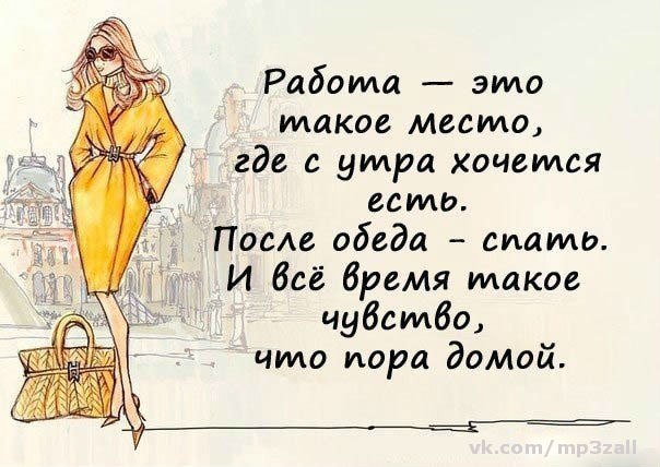 Утром дома плотно завтракаю,в обед сплю ,в 5 иду домой,на работе работаю.