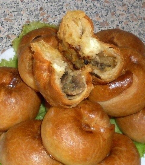 На самом деле, начинок может быть масса сладкий творог, с тыквой, с зеленым луком и яйцом, с гречкой, смешанной с жареным луком и грибами, картофельное пюре с грибами и т.д...