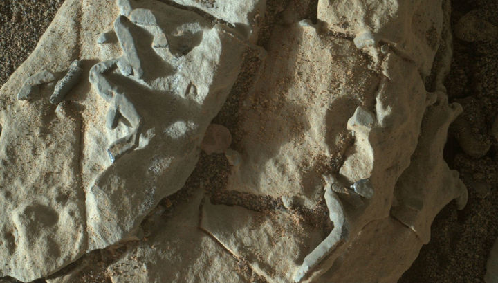 Камеры марсохода Curiosity зафиксировали странные структуры, которые могут иметь биологическое происхождение. Первоначально их разглядели на чёрно-белых фотографиях навигационных камер. Но команда проекта посчитала находку настолько интересной, что дала роверу, который сейчас взбирается на хребет Веры Рубин, команду вернуться в точку съёмки и запечатлеть загадочные объекты с помощью цветной камеры MAHLI на механической "руке" аппарата.