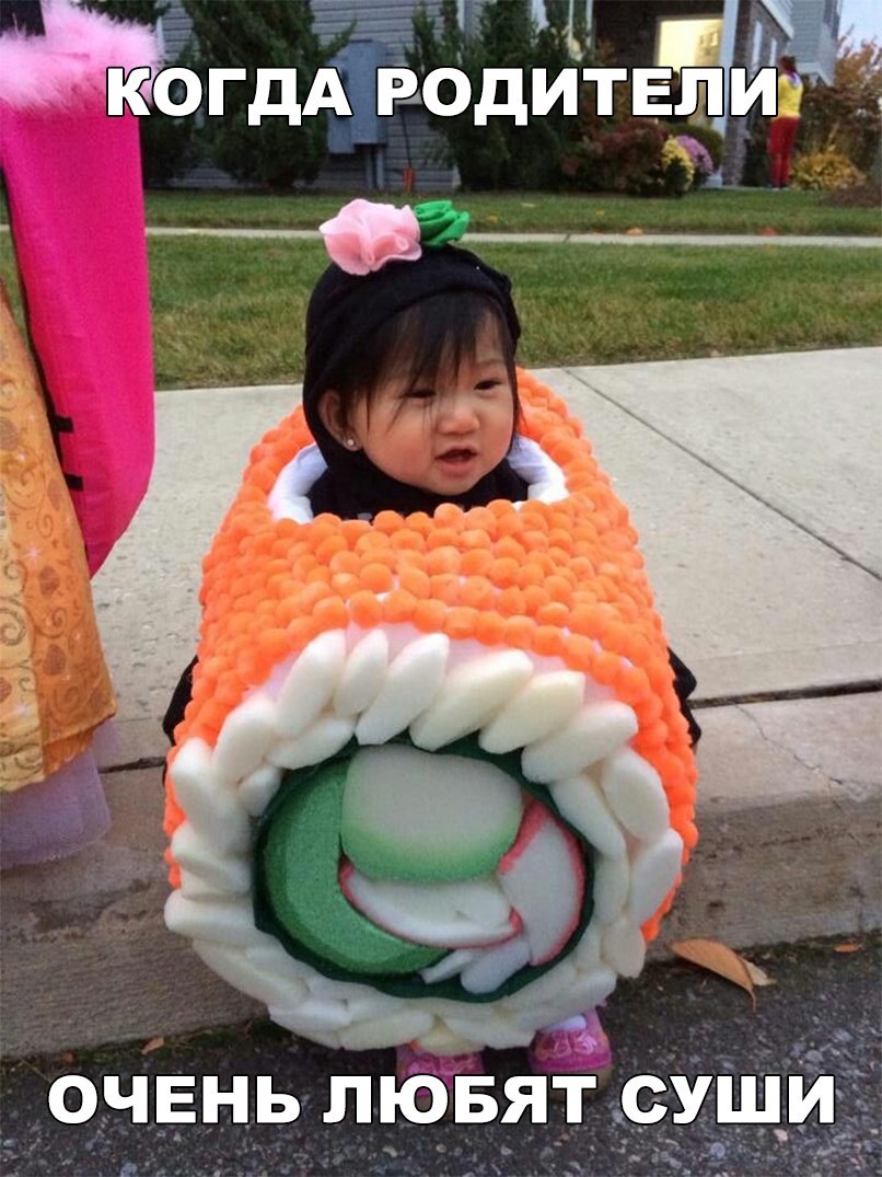 Я суши тоже люблю... Костюм с такой любовью сделан! Мероприятие обязывало я думаю!!! И девочка симпатичная!