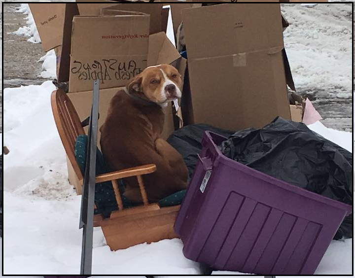 А началась она с того, что кто-то выбросил бытовой мусор на обочине дороги, вместе с коробками и треногим стулом, бросив в этой куче заодно и свою собаку.
