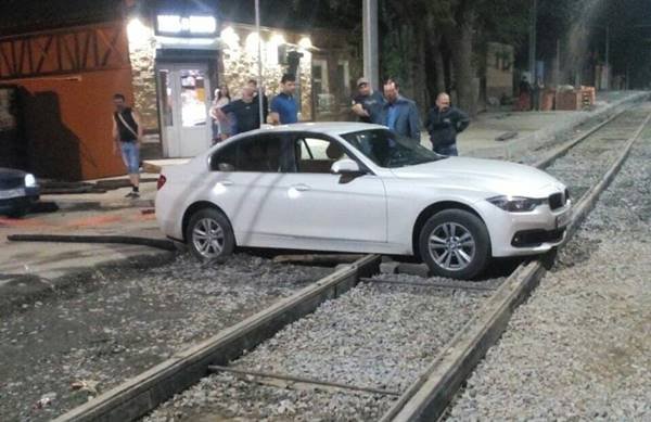 В Ростове-на-Дону на улице Станиславского BMW застряла на путях. Вечером 23 мая автоледи попала в непростую ситуацию. Подумав, что «немец» всесилен, девушка решила переехать недоделанные пути в центре города по обычным доскам. Древесный переезд не оправдал ожиданий, и транспортное средство осталось на рельсах.