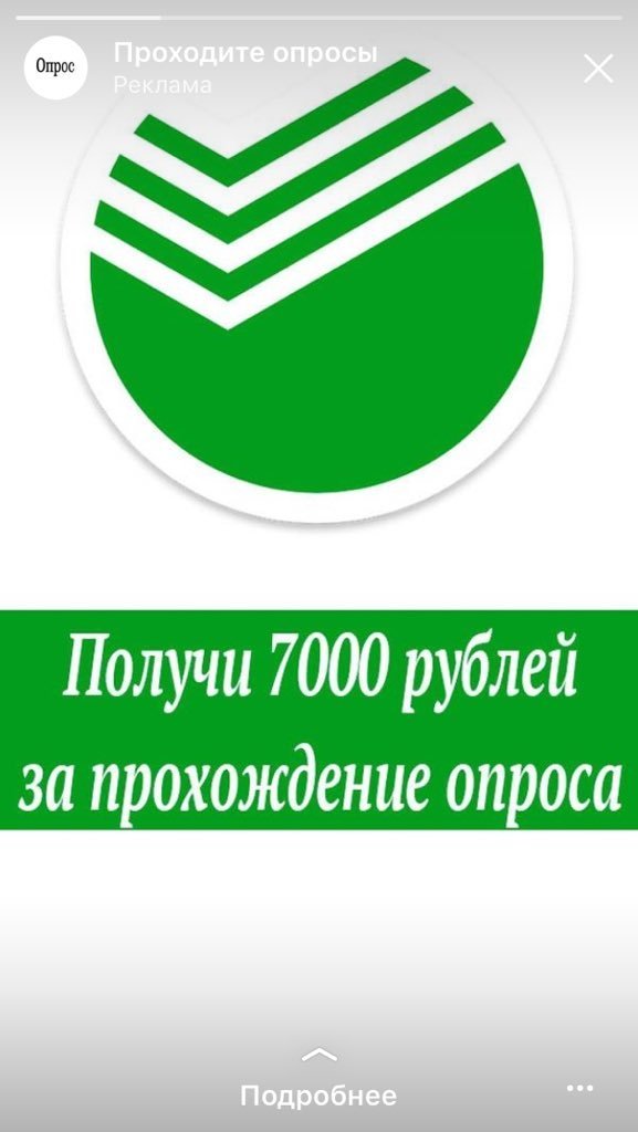 В «Твиттере» появилось несколько жалоб в адрес «Сбербанка» — в ленте новостей Instagram**** пользователи наткнулись на рекламные посты якобы от «Сбербанка» с предложением пройти опрос и получить за это деньги. При этом все посты оформляются по-разному, обещают разные суммы и меняется текст, но есть одна общая деталь — используются официальные инструменты для рекламы Instagram****. Не стоит верить подобным объявлениям, это мошенники.