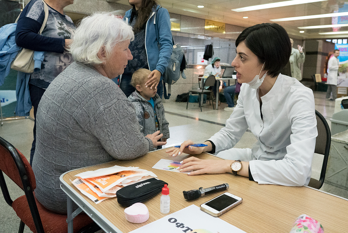 Особенно длинные очереди выстроились к специалисту-офтальмологу, на УЗИ, флюорографию и измерение артериального давления. Кроме того, все желающие могли с помощью манекена научиться оказывать первую помощь – делать непрямой массаж сердца.