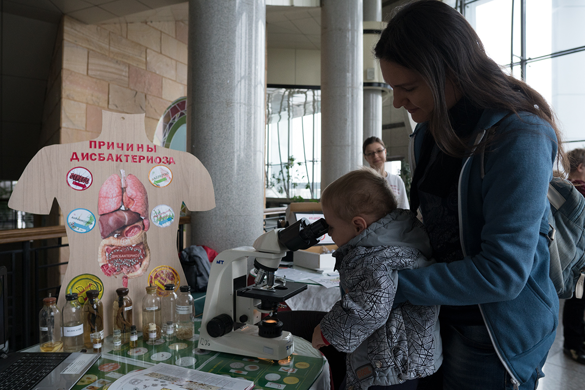 Помимо прочего посетители имели возможность посмотреть на паразитов, которые могут поселиться в организме человека, и узнать, как избежать с ними встречи. Особый интерес у детей также вызвал микроскоп, в который можно было увидеть бактерии.
