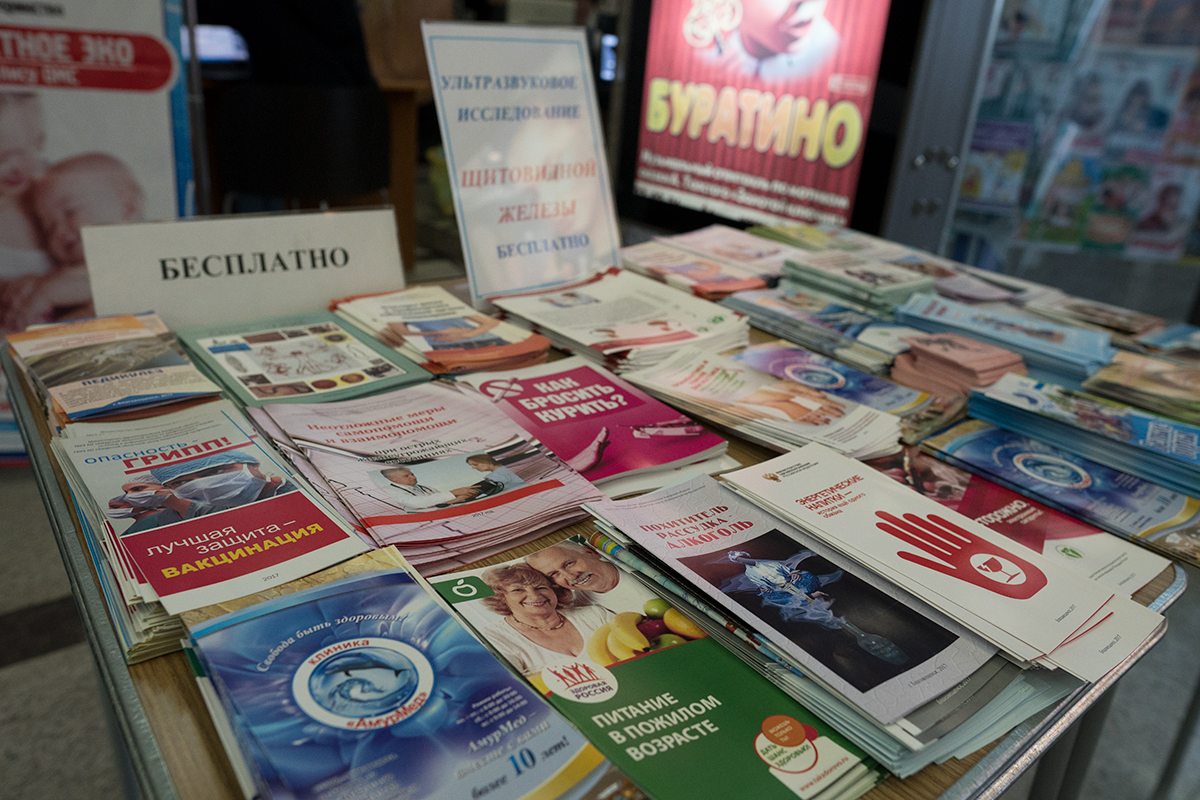 С самого утра, несмотря на дождливую погоду, возле ОКЦ и внутри него очень многолюдно — там все желающие могли сделать флюорографию, сдать тест на ВИЧ, провести УЗИ щитовидной железы, и многое другое. Что немаловажно — пройти экспресс-обследование можно было быстро, бесплатно и без каких-либо документов.