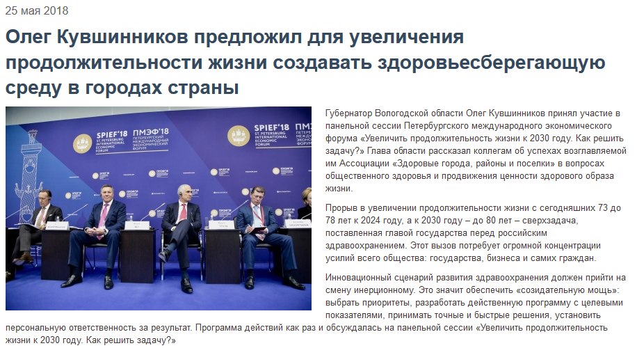 Олег Кувшинников предложил для увеличения продолжительности жизни создать здоровьесберегающую среду в городах страны.