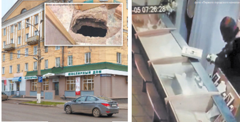 Обвиняемый попал в помещение через отверстие в полу. Для этого он два месяца по часу в день со своим по-мощником долбил бетонное перекрытие под туалетом магазина, после чего пролез через дыру и ровно за 20 секунд обчистил. Преступника нашли по машине. После задержания он объяснял, что на преступление его толкнули многомиллионные долги, которые накопились из провального бизнес-проекта в сфере грузоперевозок.