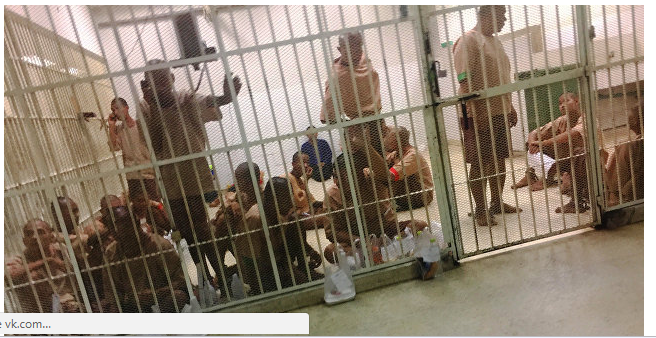 В участке нас раздели до трусов и бросили каждого в одиночную камеру. На следующий день перевезли в приемник-распределитель. Там в средних размеров комнате в полуподвальном помещении с нами находилось около 150 человек. Ноги вытянуть было нереально, сидели на корточках. Очень жарко и душно, но кормили нормально. В полицейском участке принесли какой-то фастфуд. В приемнике-распределителе давали кока-колу, гуарану, рис с курицей, гамбургеры.
