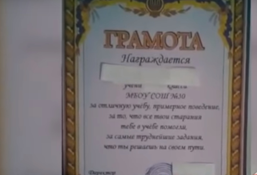 Об инциденте стало известно из видеозаписи, опубликованной на канале YouTube. Школьник продемонстрировал «антироссийскую» награду за успехи в учебе.