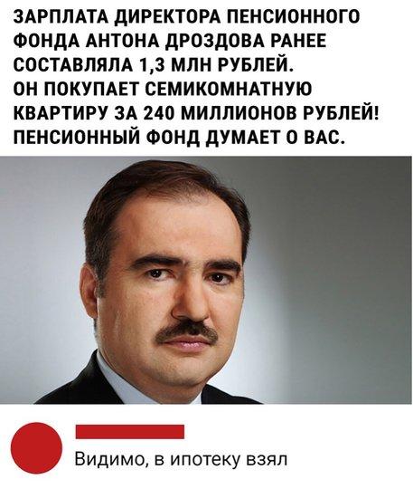 Глава Пенсионного фонда Дроздов купил квартиру за 240 миллионов. А зарплата у него 1,3 миллиона в год