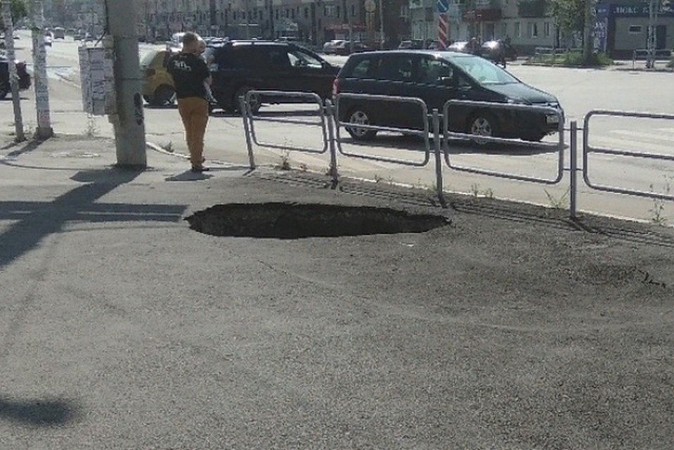 — Асфальт, который месяц назад уложили, опять провалился, яма глубиной метра два. Этот кусок тротуара ремонтируют каждое лето, но, видимо, этот «портал» дорожниками закрыть не суждено, — написали в соцсетях местные жители.