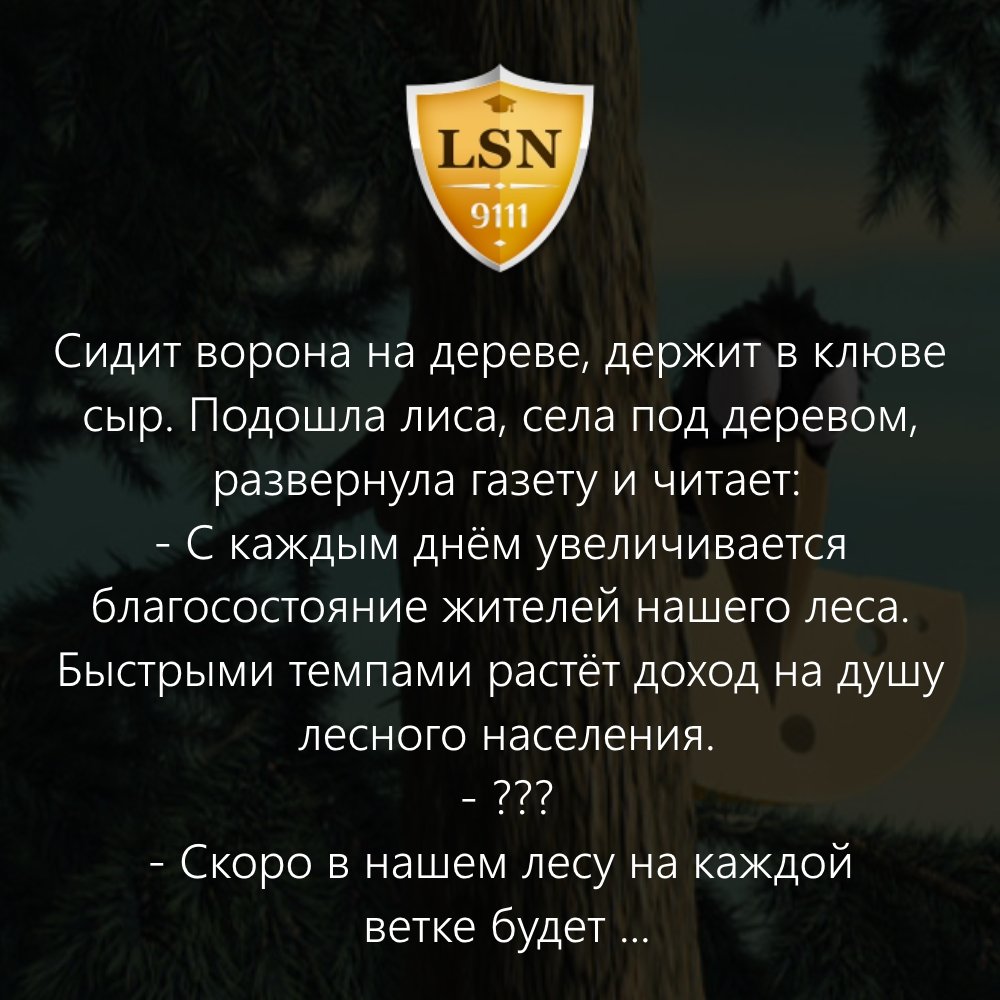 А где в анекдоте про правительство и решения? Там про лису, ворону и враньё из лесной газеты, про благосостояние жителей леса.
