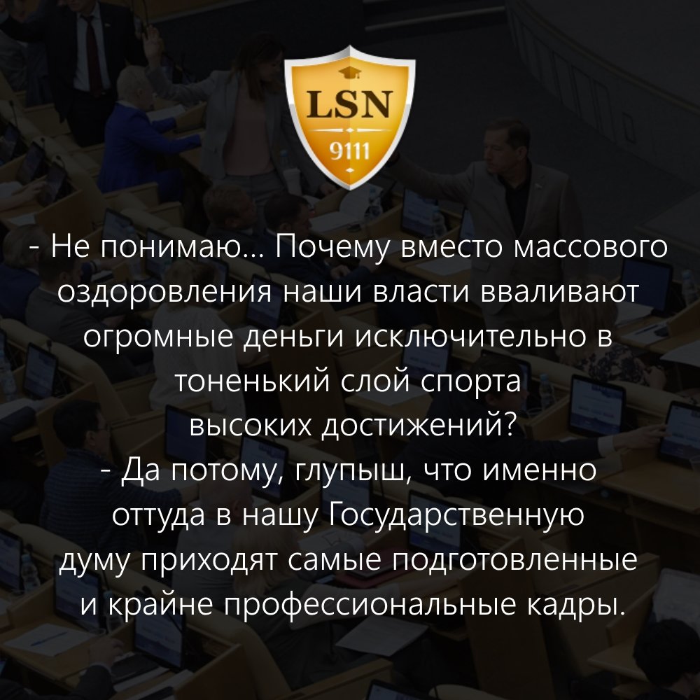 поэтому в думе одни спортсмены тупоголовые , как в спорте они думали о своём кармане , так и в думе , думают о своём кармане