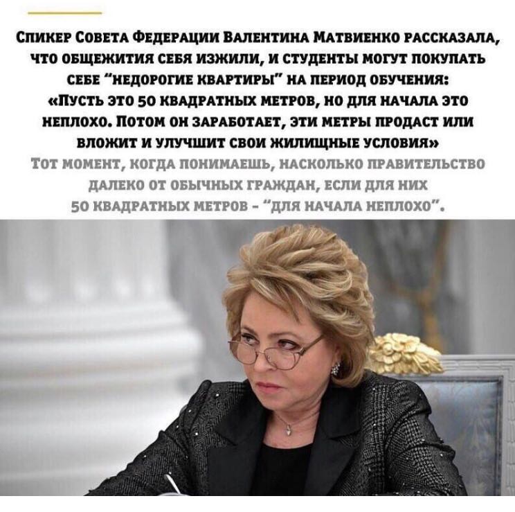 Ну вот, теперь становится понятным, откуда Матвиенко взяла информацию, что нынешним студентам по карману купить себе "для начала" однокомнатную квартиру площадью 50 кв.м.
