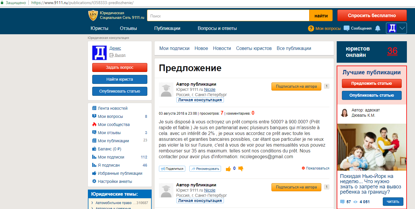 Сайт 9111 упал в моих глазах. Статус юриста получил "нигерийский спаммер"