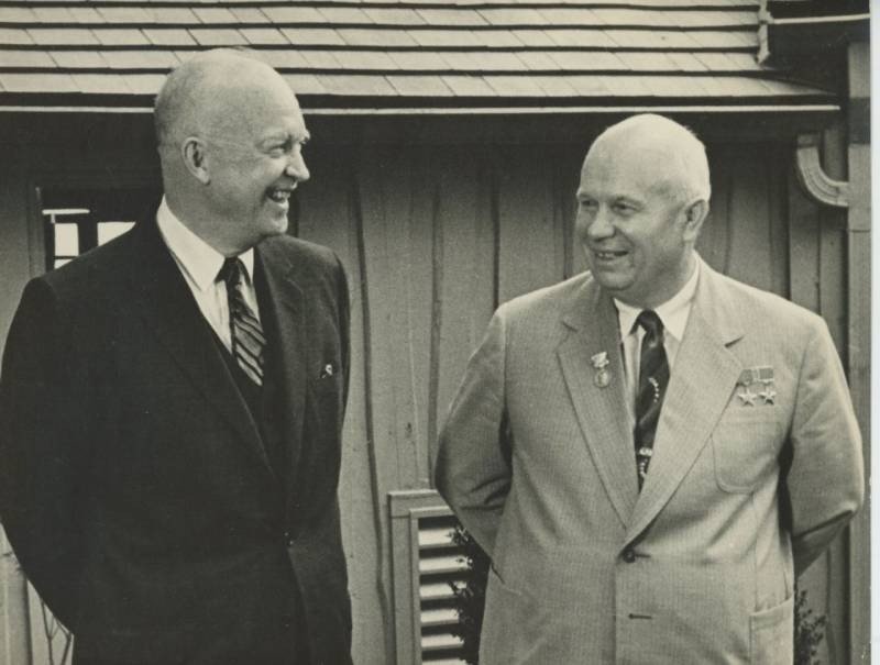 В этой связи характерна оценка военной политики Хрущева (на фото с президентом США Д. Эйзенхауэром) российским историком и политологом Алексеем Ракитиным: «…В марте 1956 г. он отменил принятый ранее план строительства в период 1955–65 гг. 14 тыс. новых истребителей (правда, имеются сведения, по которым тот зарубил этот план не в 1956 г., а двумя годами позже). Более того, с 1956 г. началось значительное сокращение ВВС (оно осуществлялось в рамках масштабного сокращения всех Вооружённых Сил СССР на основании постановления Президиума ЦК КПСС от 9 февраля 1956 г.). В том же году из состава советских ВВС на несколько десятилетий (до начала 1970-х включительно) исчезла штурмовая авиация, упразднённая приказом министра обороны СССР Г.К. Жукова (№ 30660 от 29 апреля 1956 г.).