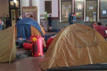 Украинские туристы разбили лагерь на вокзале в знак протеста