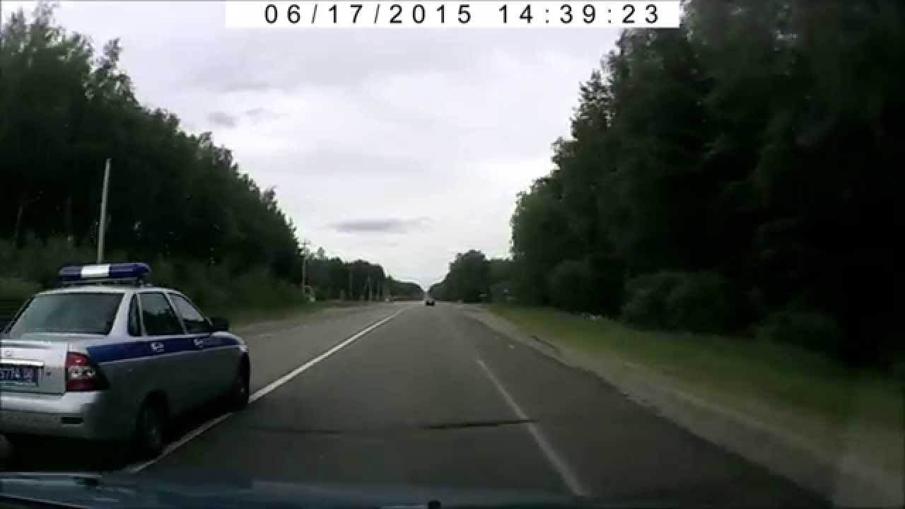 Смотрите видеоролик. Нарушитель выталкивает полицейскую Нексию в кювет на 1:05, а затем можно мотать на 3:40.