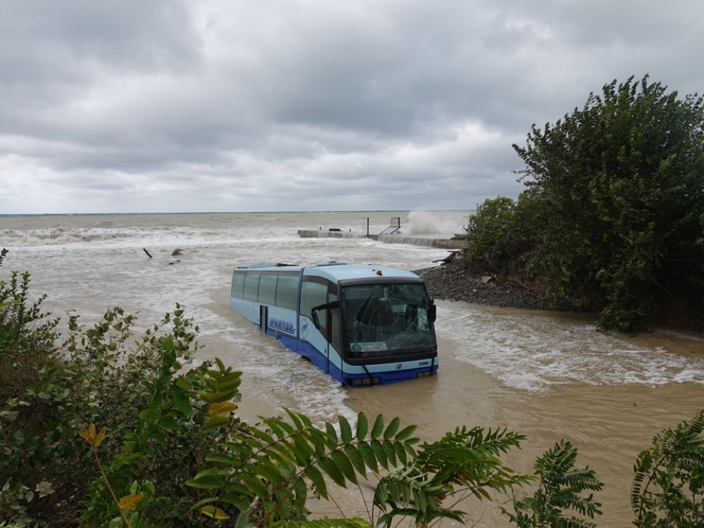 А утром в субботу в сети появились кадры с уплывающим в море автобусом. Уточняется, что этот инцидент произошел в селе Широкая Балка. К счастью, в этот момент в автобусе не было пассажиров. Пятибалльный шторм и сильный ливень просто смыли автобус в море.