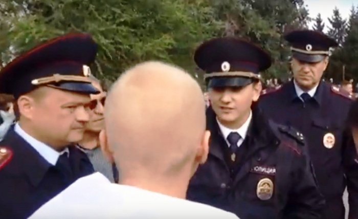 Вчера, 11 сентября, омич Иван Притужалов разместил в группе «Сатира Без Позитива / Новости с овощебазы» в соцсети «ВКонтакте» видеозапись с митинга против пенсионной реформы, который прошёл 9 сентября. На видео сотрудник полиции объясняет омичу, в каких случаях нужно использовать флаг Российской Федерации.