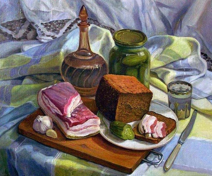 — А это, — показывает хохол на сало, — я ж с него балдею!