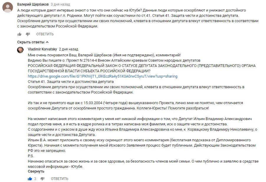 и почитать комментарии к ролику про Депутата Ильина из подмосковных Родников. Можно в ютубе оставить и свой комментарий. Уже несколько юристов из 9111 оставили свои профессиональные комментарии.