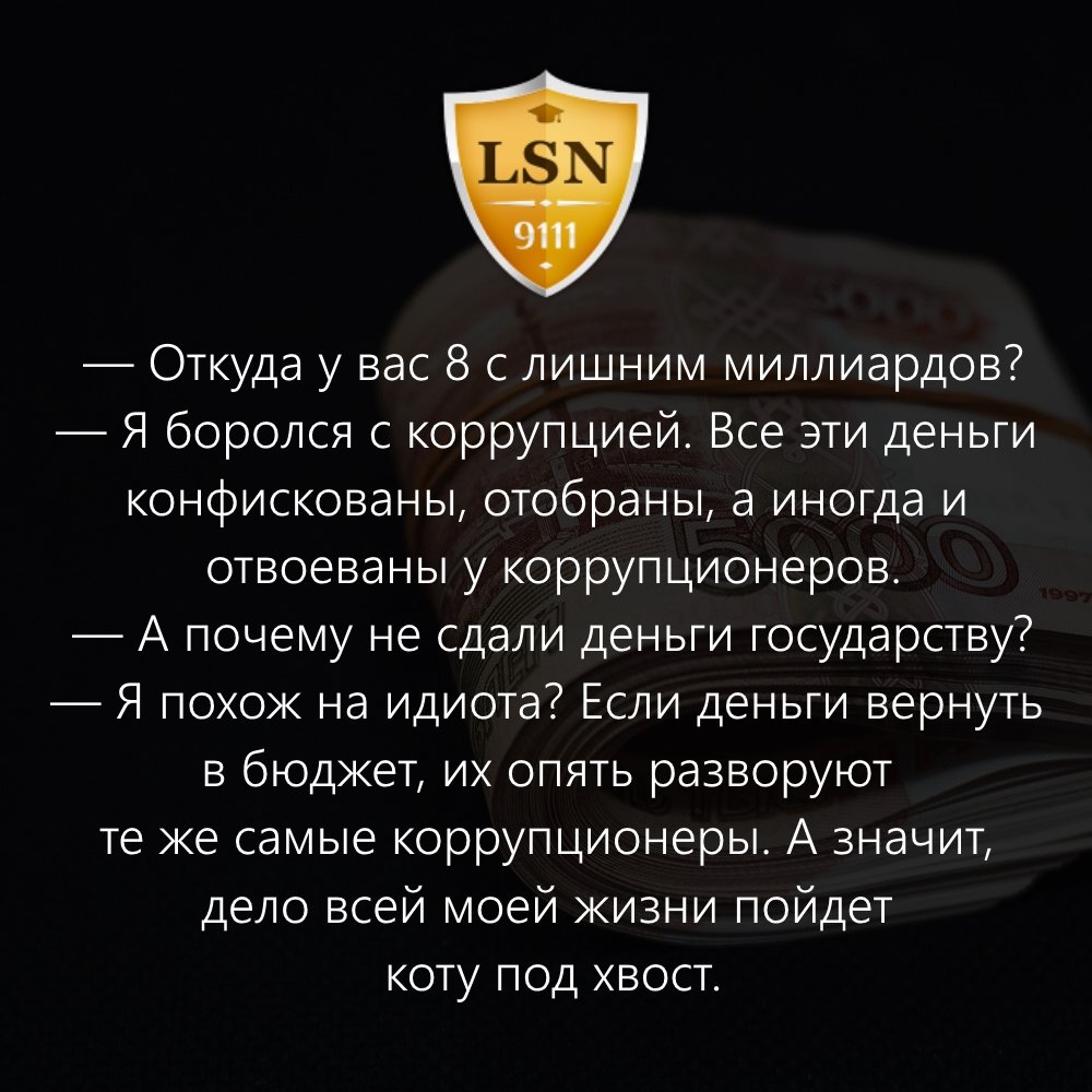 — И таки— да, всё просто: взятки — это, когда взяли и сделали, коррупция, когда взяли, но не сделали. И с такой язвой на теле общества нужно беспощадно бороться!