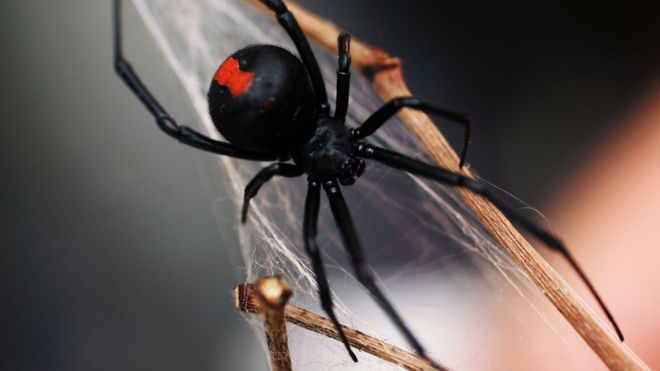 Красноспинный паук, который встречается в Австралии, является близким родственником вида "черная вдова" и имеет характерную красную полосу на брюшке.