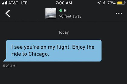 «Вижу, ты на моем рейсе. Наслаждайся полетом в Чикаго», — написал летчик.