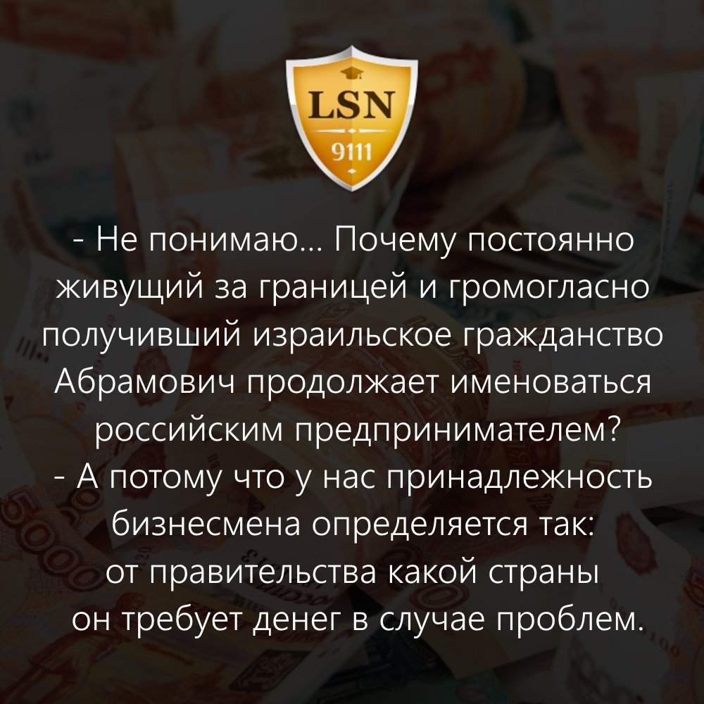 -Не понимаю… Почему постоянно живущий за границей и громогласно получивший израильское гражданство Абрамович продолжает именоваться российским предпринимателем?