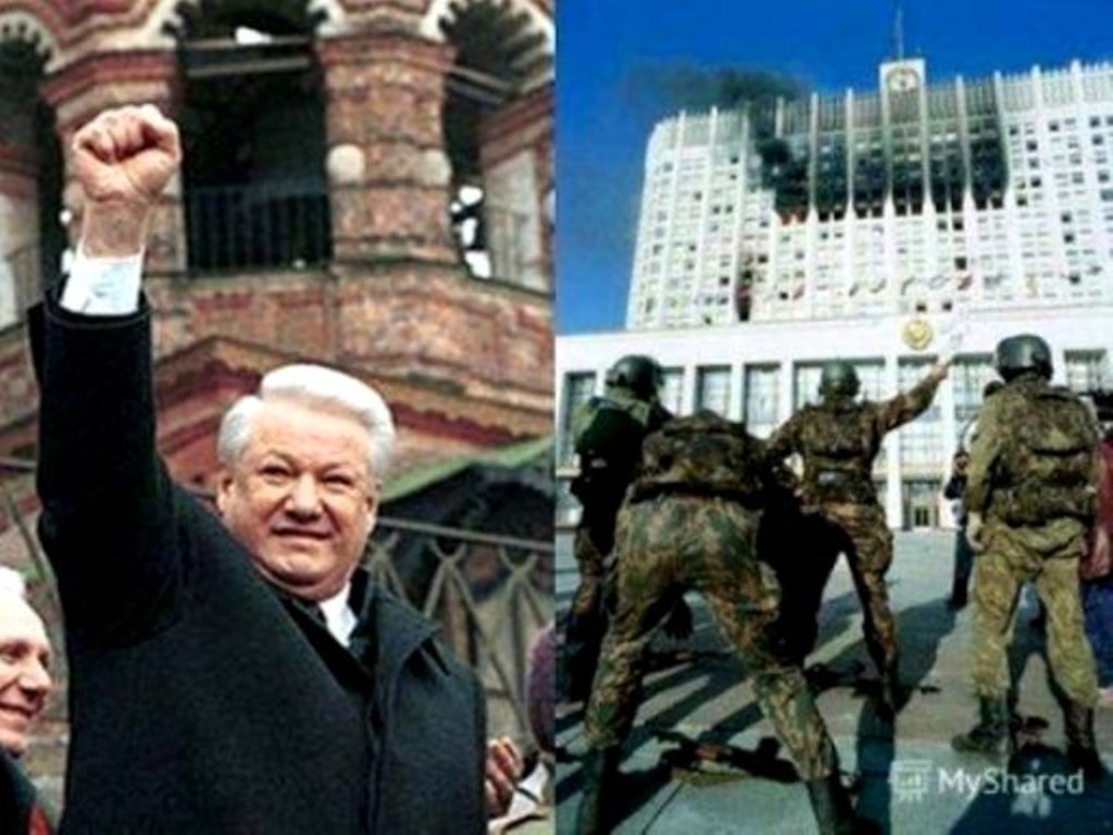 Окончательный проект Конституции РФ подготовила узкая группа лиц, определенная Президентом РСФСР Б.Ельциным при консультативном содействии представителей США. Составители Конституции РФ 1993 г. взяли за основу Конституцию США.