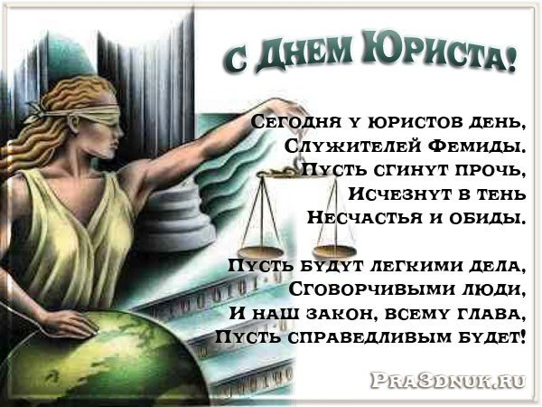 Поздравляю всех юристов с профессиональным праздником! Вы делаете очень нужное дело, вы нужны народу! Спасибо вам за вашу работу!