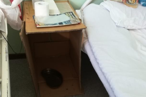 В городской больнице № 1 установили картонные тумбочки. Больным пришлось складывать туда свои вещи.