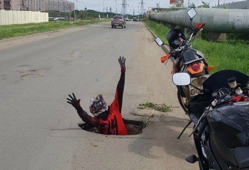 В результате попадания переднего колеса мотоцикла в яму на проезжей части произошло дорожно-транспортное происшествие. Мотоцикл гражданин получил механические повреждения.
