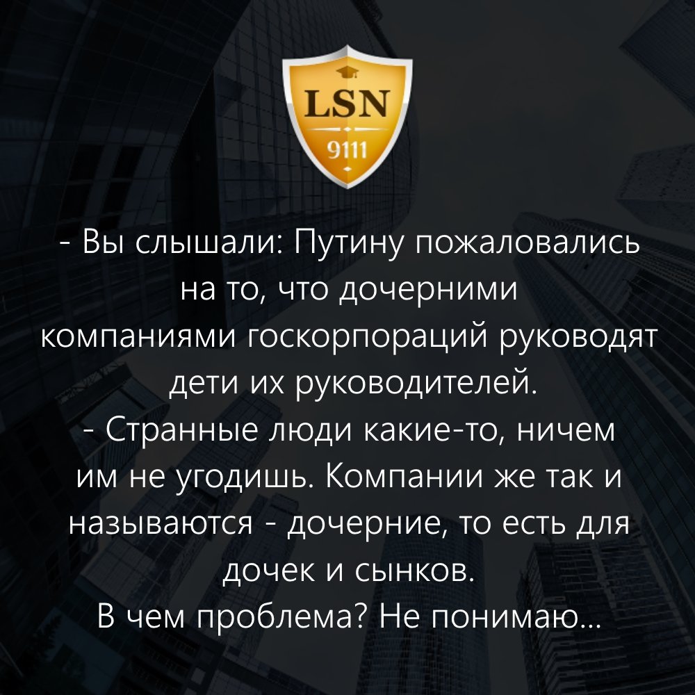Не только дочки в дочерних компаниях, но и дочки директора и у власти города, особенно маленького городка это заметно. Более того, родственники с одной фамилией во всех структурах. А раз город не большой. То о ком-нибудь из известных фамилий знают такоееееее что делается страшно, кто ведет город и куда...