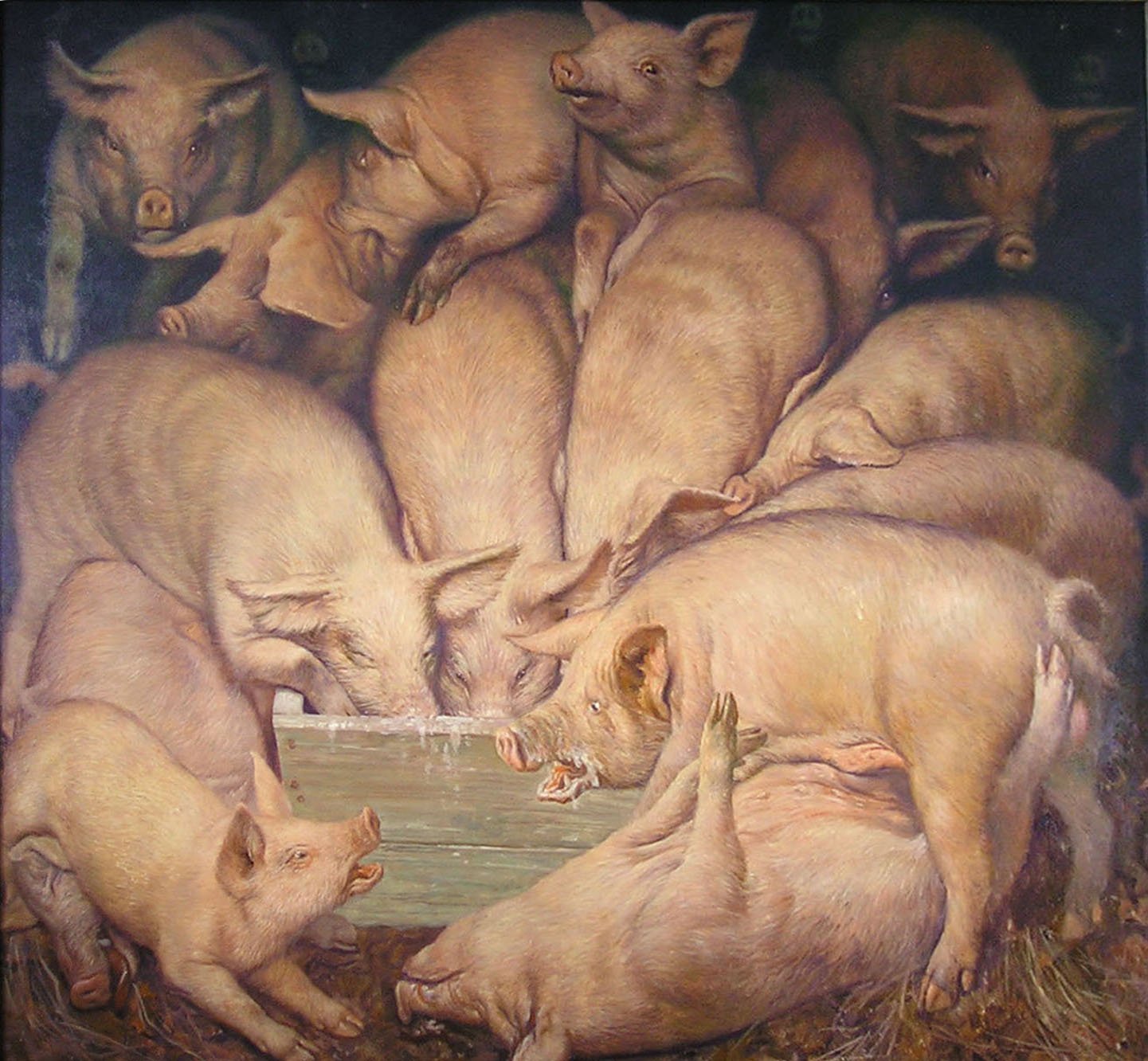 2019 - их год. Свиньи у кормушки.