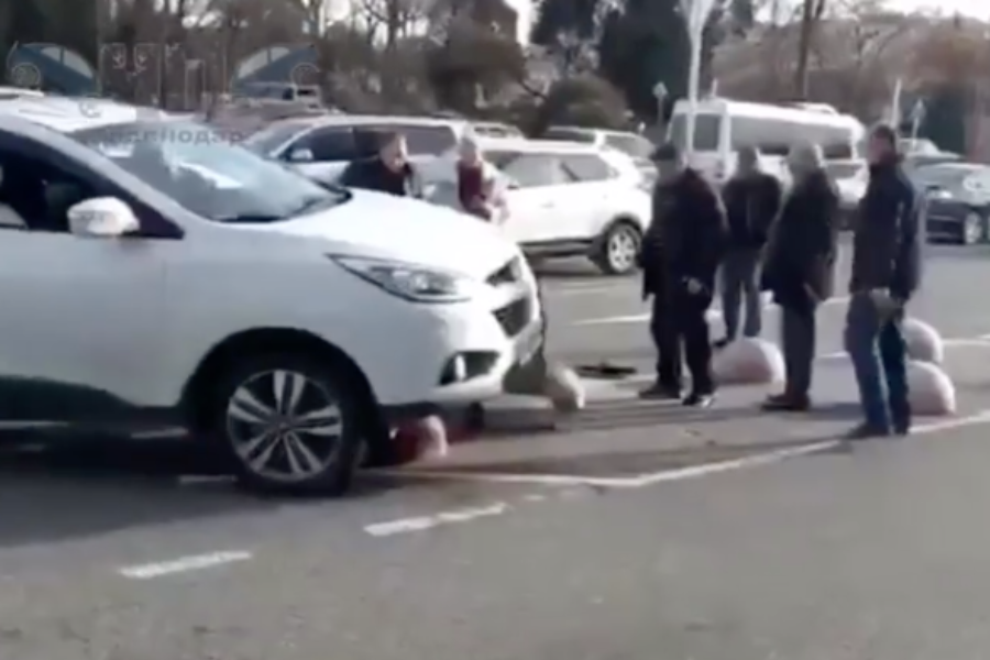Автоледи в Адлере застряла в дорожных шариках и попала на видео